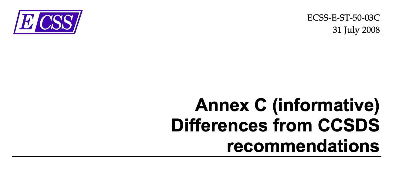 A thought that quickly comes to your mind and the minds of anyone having to go through the pain of surfing standards: standardization organizations, ironically, do not seem to talk to each other. There’s a lack of standardization of the standardization. For instance, take the ECSS-E-ST-50-03C (“Space data links - Telemetry transfer frame protocol”) along with the CCSDS 132.0‐B‐1 (“TM SPACE DATA LINK PROTOCOL”). Don’t they, like, tackle the exact same thing? They do. Why have two standards? The confusion is so real, that the former has an Appendix explicitly added to point out the differences with the latter: