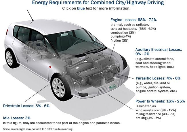 A gasoline car is a great example of a stupidly inefficient machine: its efficiency can be between a depressing 12%-30%2—what an indecent, shitty number.