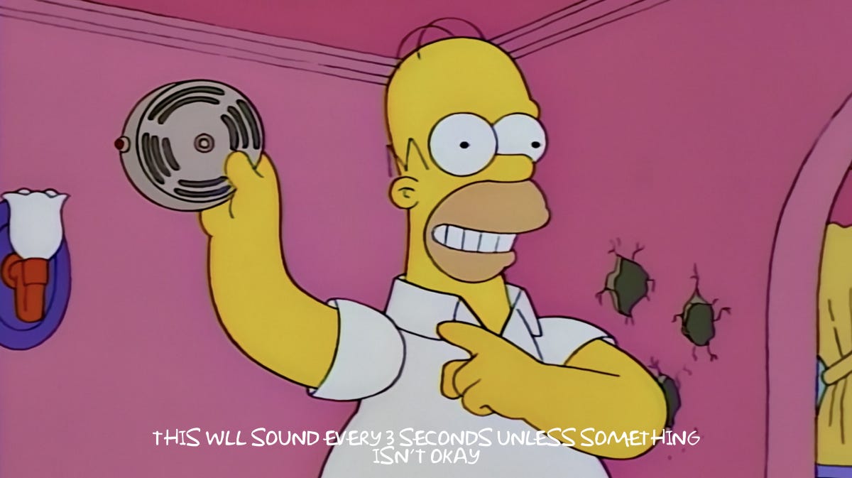 To finalize with a somewhat more cheerful note, in the episode The Wizard of Evergreen Terrace, Homer Simpson invents The Everything's Okay Alarm. As implied by the name, his invention emitted a loud smoke-alarm-like sound every three seconds to inform listeners that everything is okay.