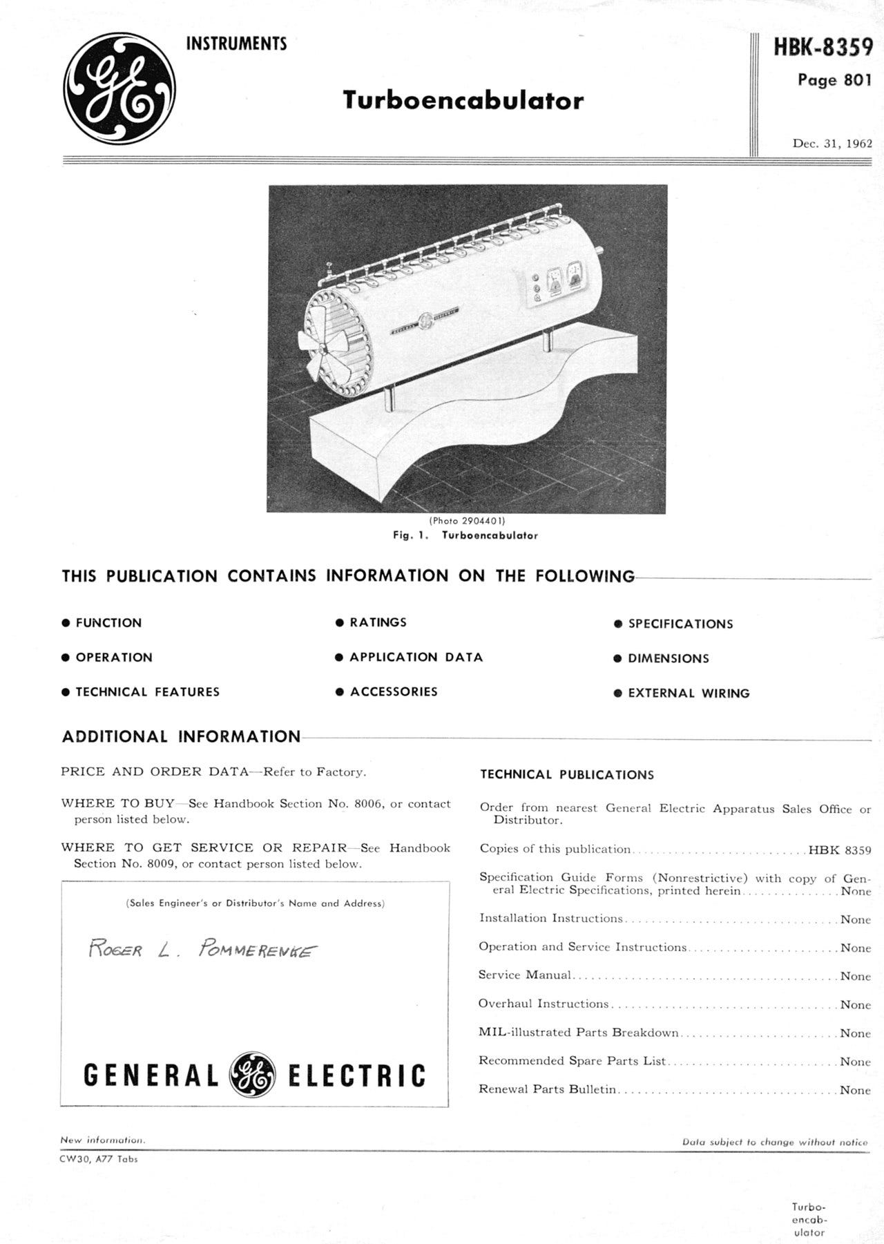 Years ago, a fictional electromechanical device called the Turboencabulator became a famous joke among engineers. Originally written by a British graduate student called John Hellins Quick (1923–1991) and published by the British Institution of Electrical Engineers in their Students' Quarterly Journal in 19442, it represented the satirical marriage of technobabble and empty marketing, with memorable results. Throughout the years, other tech companies picked it up and continue the tradition. Here’s the datasheet from GE for your reference: