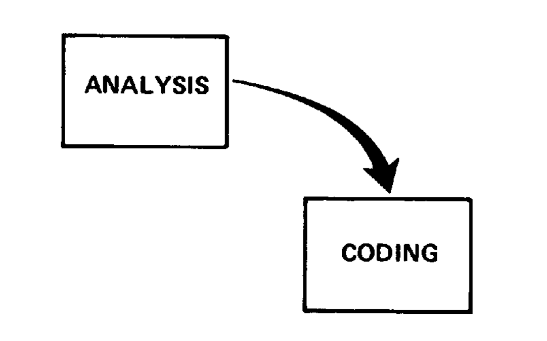 Ni bien lo dije, se me vino a la cabeza el famoso paper de Winston Royce (1970)—vilipendiado hasta el hartazgo por las hordas de agile bros y malinterpretado ad nauseam como precursor del waterfall—donde arranca con un modelo tan similar a mi descripción como insultantemente básico: